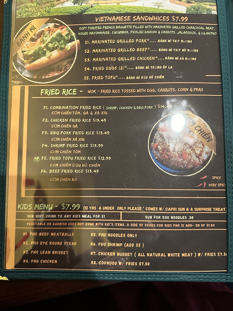 The menu blends traditional Vietnamese favorites with some modern twists, giving you the perfect balance of comfort and creativity. The pho is a crowd favorite, with a rich, aromatic broth and tender meat that melt in your mouth. If you’re looking for something a bit lighter, the rice dishes and vermicelli bowls provide a refreshing option, packed with fresh herbs and vibrant flavors.