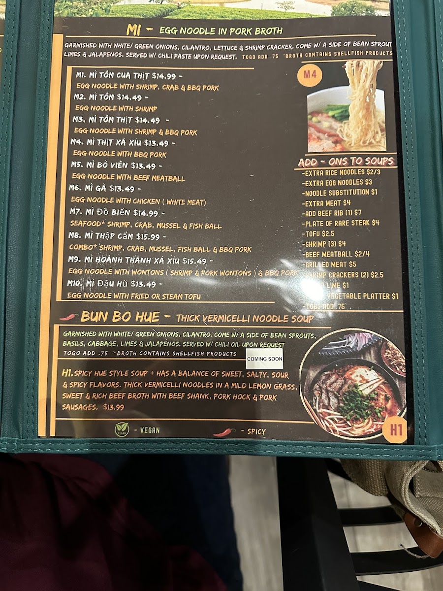 H1. Spicy Hue Style Soup + Has A Balance Sweet, Salty, Sour Spicy Flavors, Thick Vermicelli Noodles In A Mild Lemongrass. Sweet & Rich Beef Broth With Beef Shank, & Pork Sausages